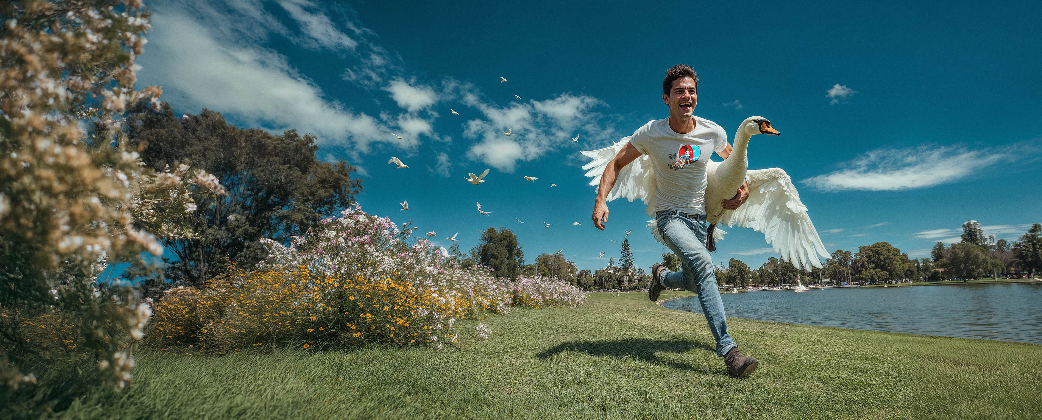 "SMALL APE - BIG ANACONDA" PREMIUM COTTON T-SHIRT - WHITE